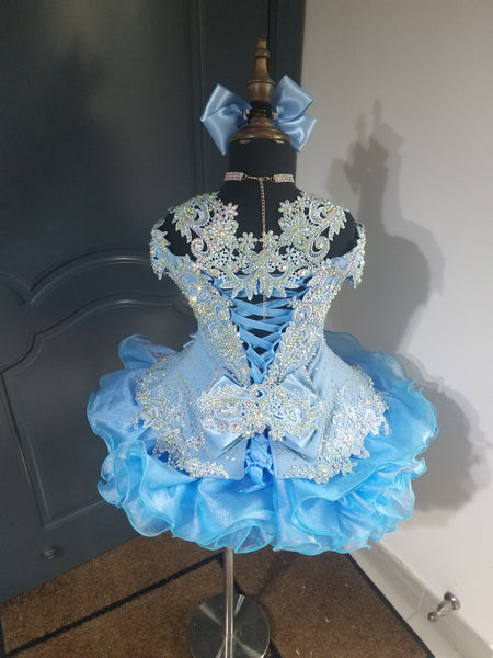 Size XS: (1-2T) Chest: 20-22", Waist: 20-22", Bodice Length: 9", Skirt Length: 8".